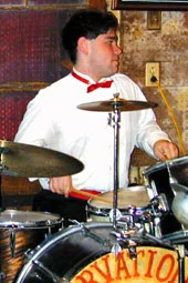 Brett Hunter played drums with the band in 1997-98. Brett studied at Cleveland Institute of Music. He toured Germany with the Washington Symphony Orchestra, and performed with the Federal Jazz Commission, the Sunshine Skiffle Band, the Beall Street Seven, and Doc Scantlin and his Imperial Palms Orchestra.