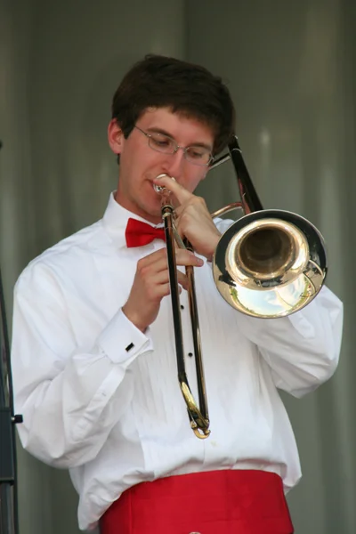 Matt Musselman played trombone in the band in 2001-2004 while a student at Walt Whitman High School and Montgomery College. Matt was named to the All-County and All-State Jazz Ensembles. He also performed with King James and the Serfs of Swing, the SingCo Rhythm Orchestra, the Tom Cunningham Orchestra, and the Celestial Sliphorns. A recipient of the Hank Levey Outstanding Soloist Award and a Chantilly Jazz Festival All-Star award, Matt wrote arrangements for the Air Force's jazz ensemble, the Airmen of Note. Matt went on to tour with the Glenn Miller Orchestra and has performed in New York with Vince Giordano's Nighthawks, the Baby Soda Jazz Band, the Grand Street Stompers, the Cangelosi Cards, the Glenn Crytzer Big Band, and the Hot Jazz Jumpers, as well as with the Roof Garden Jass Band at the Bix Beiderbecke Memorial Jazz Festival. He also led his own traditional jazz band in New York, Grandpa Musselman and the Syncopators, which was selected for the prestigious Jazz Aspen Snowmass Academy program and has headlined at Dizzy's Club at Jazz at Lincoln Center. Matt graduated from the Manhattan School of Music and then earned a Master's at the Juilliard School of Music. He has worked at the Louis Armstrong House and Museum.