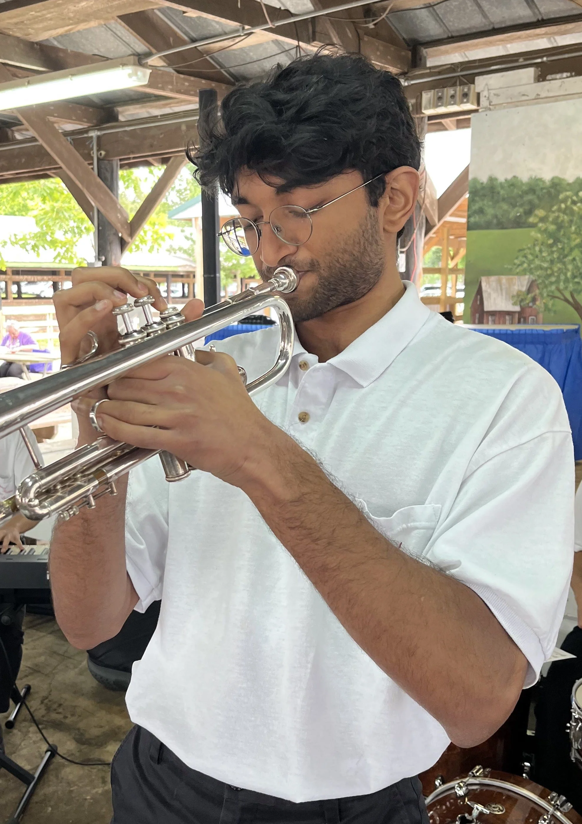Vinesh Sridhar played trumpet in the band in 2023 upon graduating from the U. of Maryland. Vinesh went on to the U. of California-Irvine for graduate school.
