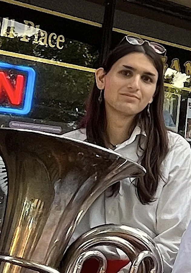 Quinn Sarracco played tuba with the band in 2020-24 while a student at the U. of Maryland. Quinn also played in the New Leaf Brass Quintet, the Maryland Low Brass Trio, the Capital Wind Symphony, the Brass Band of Northern Virginia, and the American Pops Orchestra, and taught tuba and euphonium at the College of Southern Maryland. Quinn was also a manager at the Strathmore Music Center concert hall.